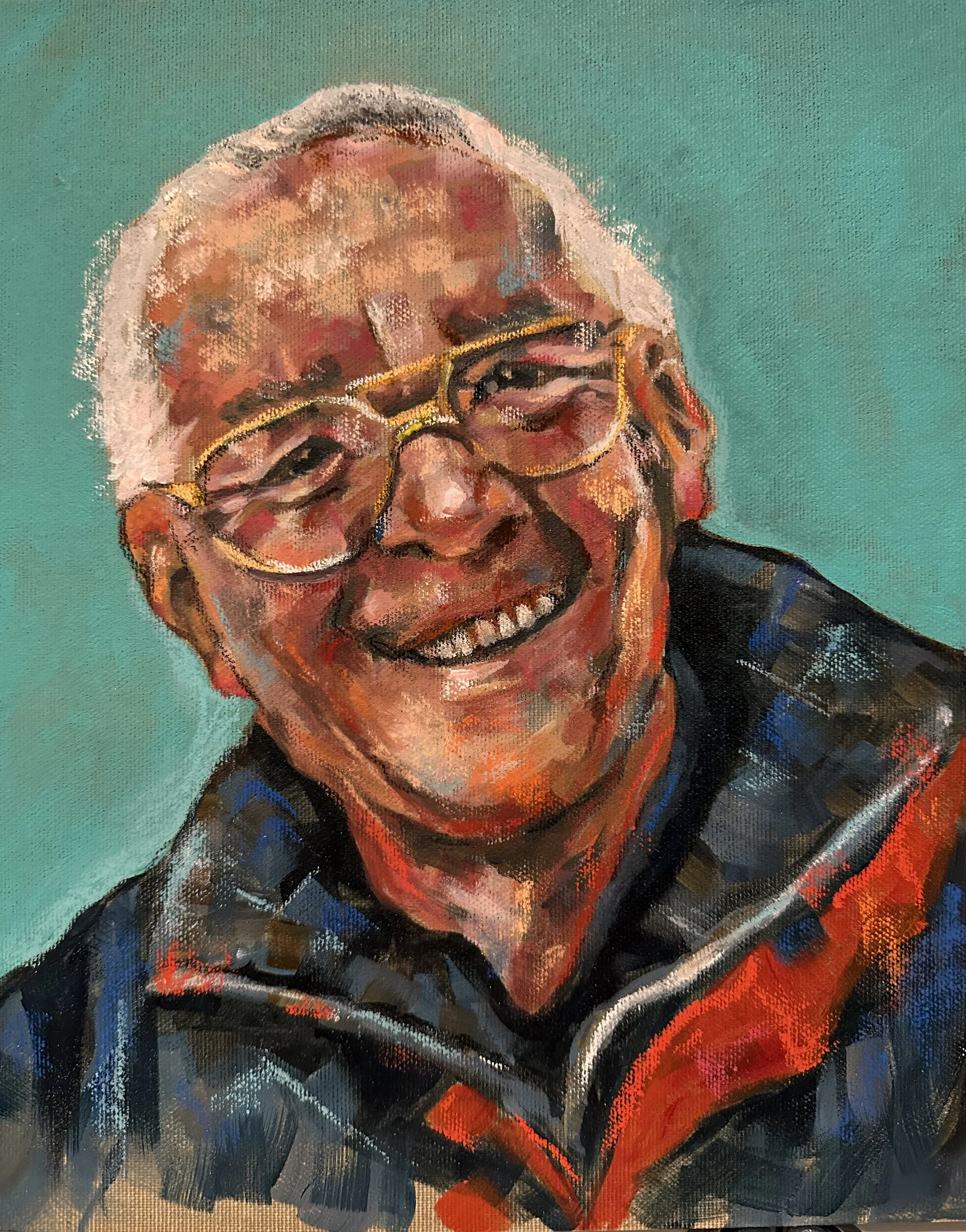 This is a portrait in loving memory of Rodney Benham, my father-in-law. I wanted to try to capture a little of his spirit — his warmth, his humour, and the spark in his eyes.